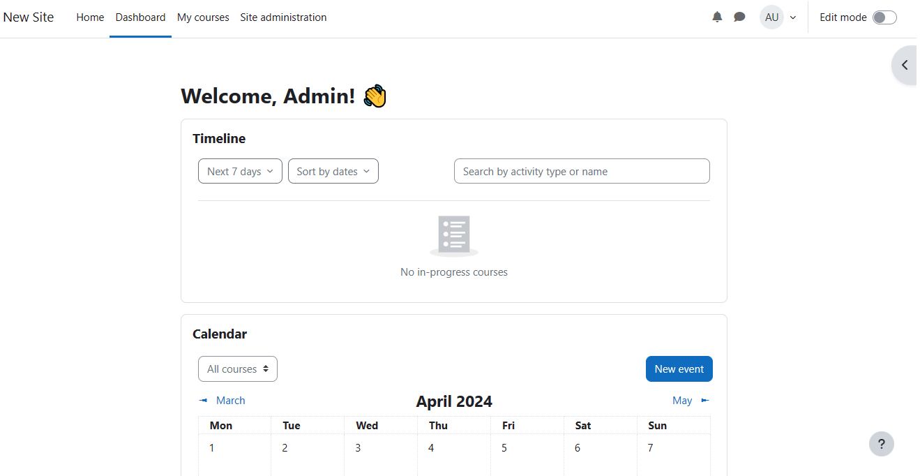 1. 登录到 Moodle 管理界面,打开 Site administration