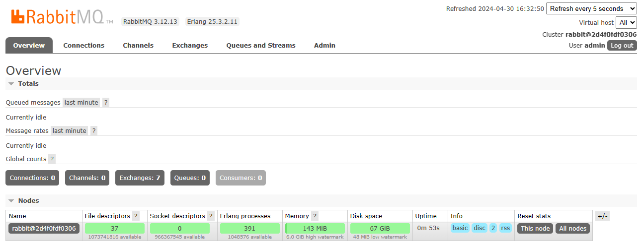 2. 登录成功后,会进入 RabbitMQ 控制台界面