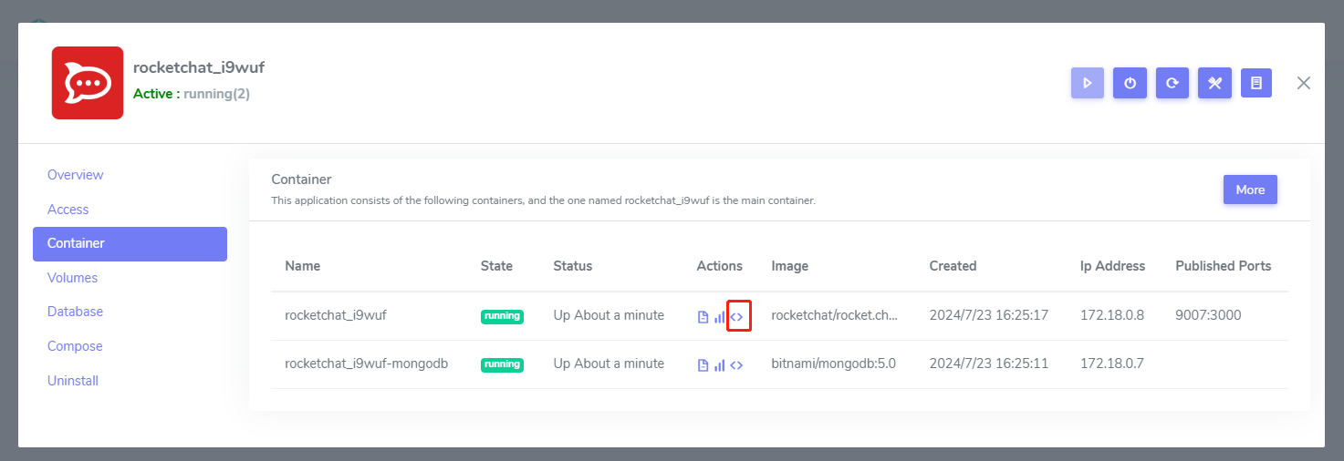 You can access container by Websoft9 Console which is the implementation of docker exec command.
